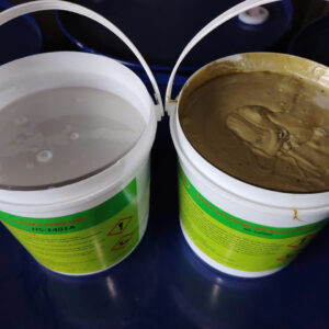 - Pha keo HS-1401: Cân đong A:B đúng tỉ lệ; khuấy đều; tránh cuốn bọt; chỉ trộn đủ dùng.